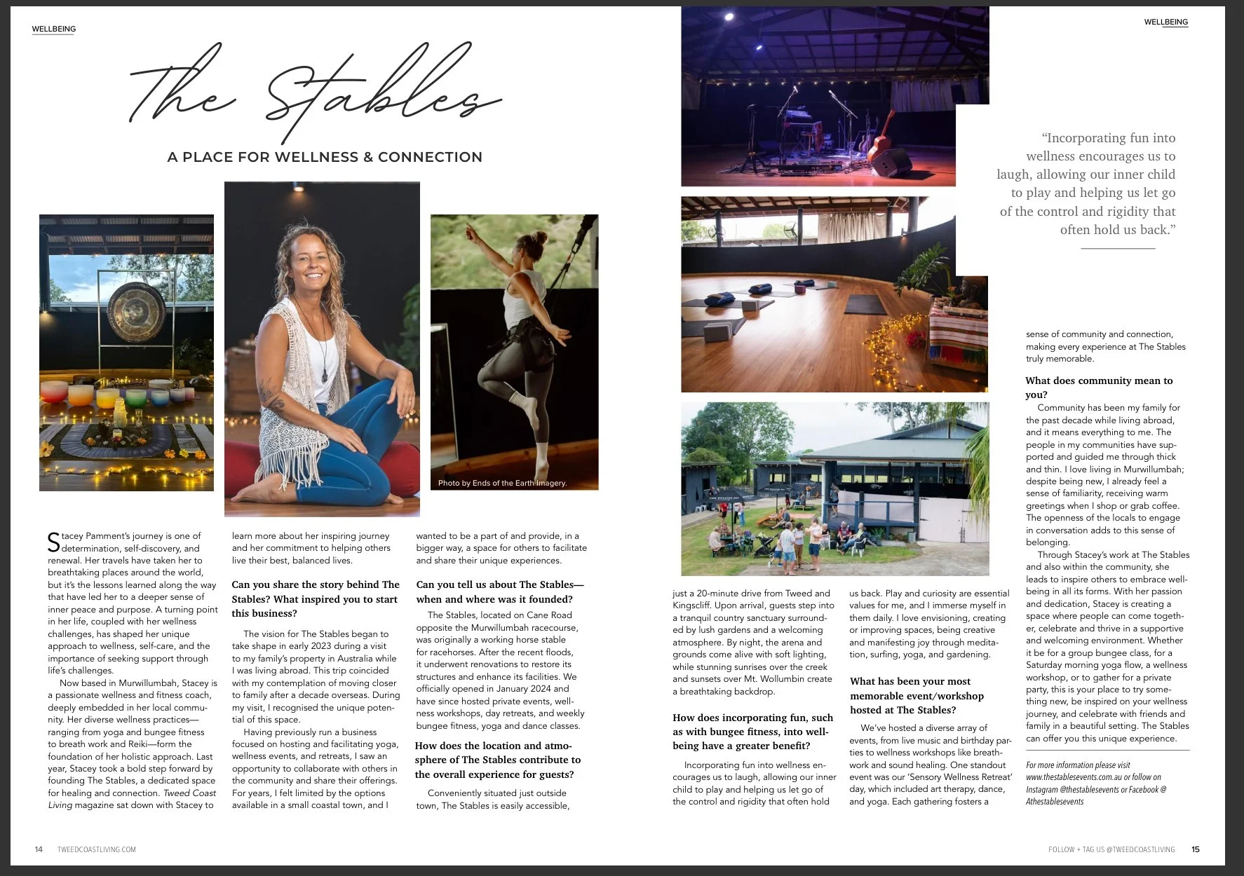 The Stables is a place to come together, to play, laugh, learn & celebrate in Murwillumbah. It has been opened to the public for Yoga, Bungee fitness classes and events.